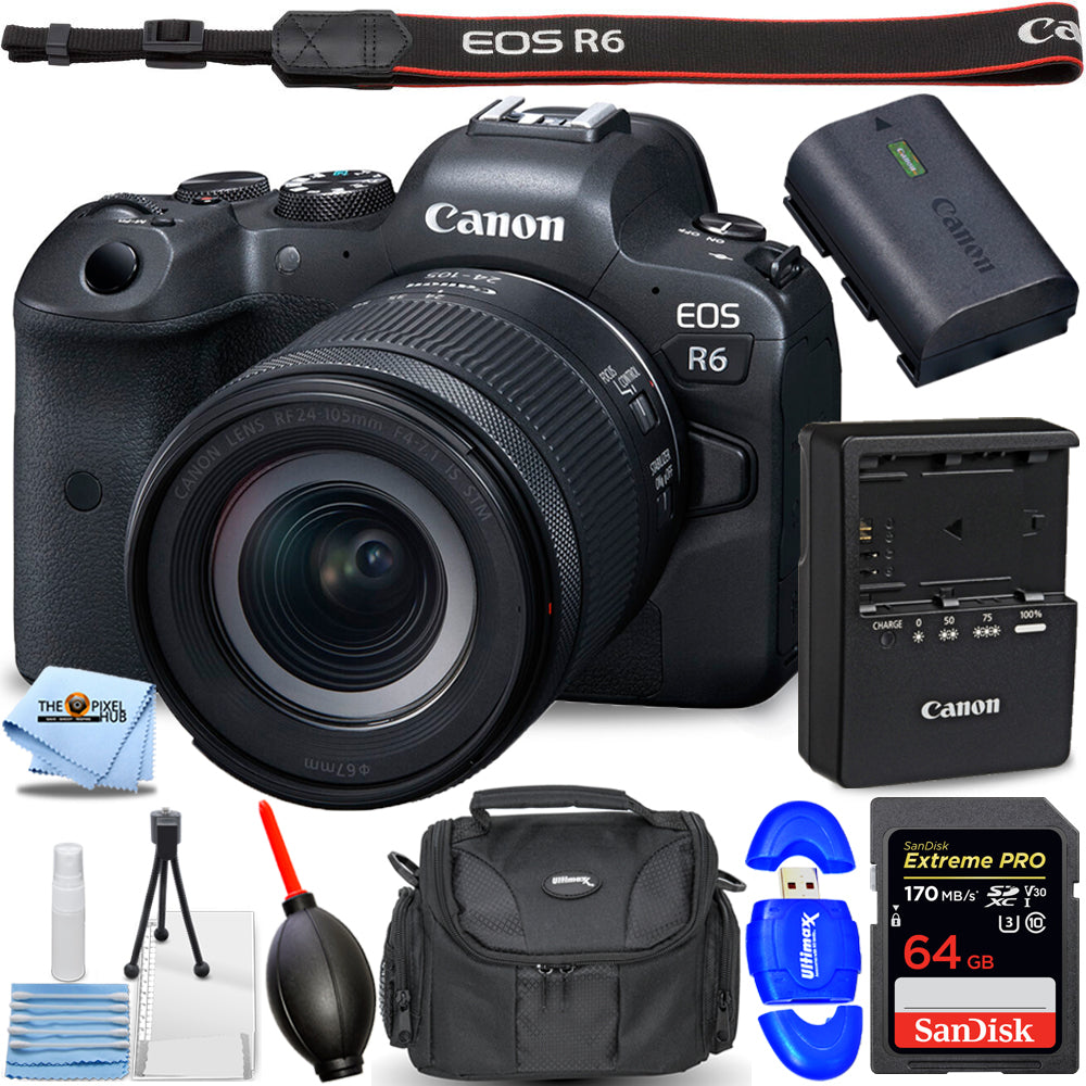 Canon EOS R6 spiegellose Digitalkamera mit 24-105 mm f/4-7.1 Objektiv – 64 GB Paket