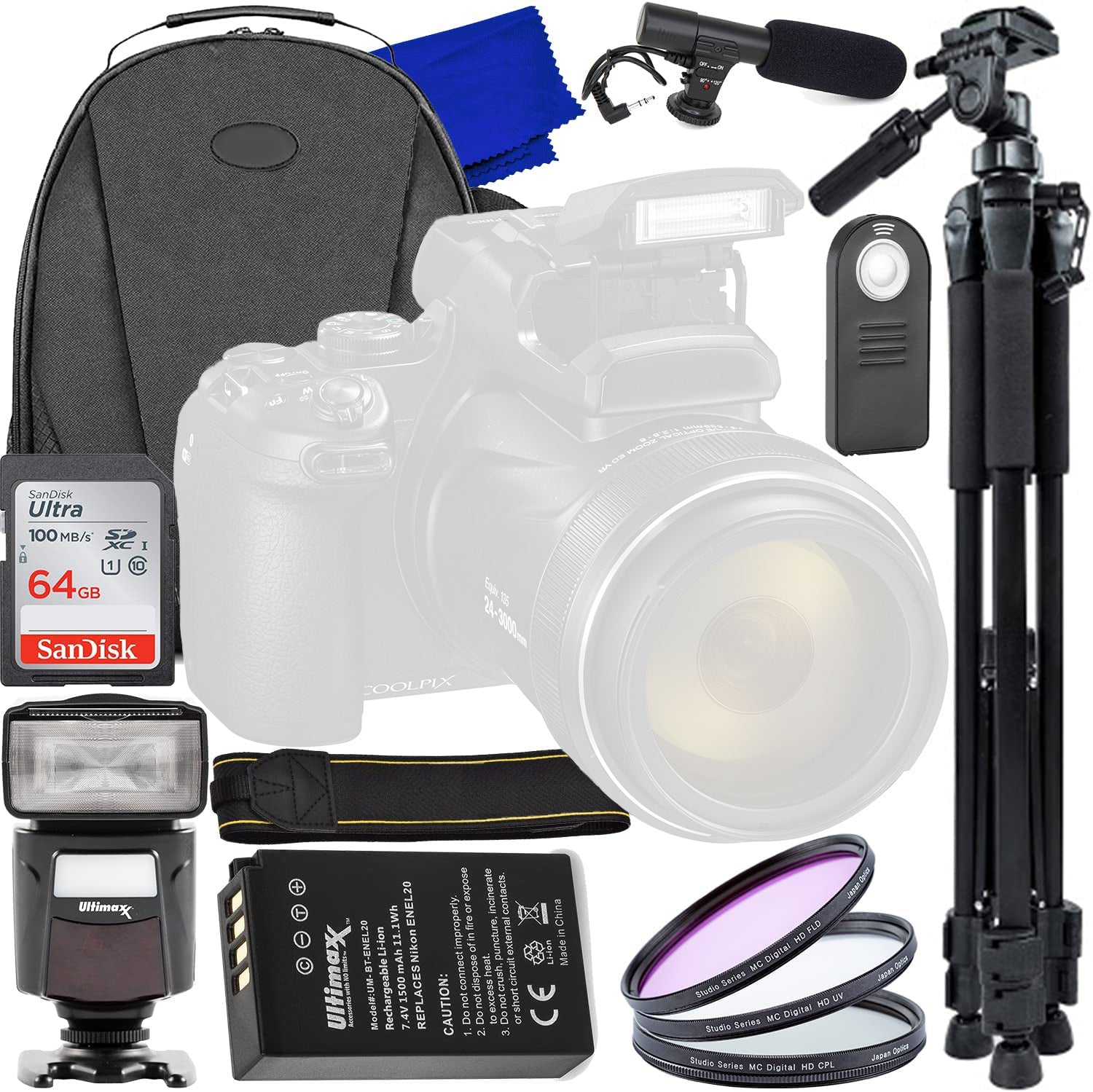 Nikon Coolpix P1000 16MP 4K Digitalkamera 26522 - 9-teiliges Zubehörpaket