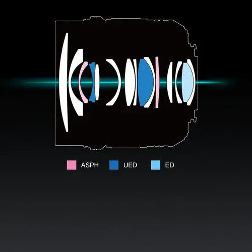 Two ultra extra-low dispersion (UED) elements and one extra-low dispersion (ED) element work to significantly minimize color fringing and chromatic aberrations for increased clarity and color fidelity.
