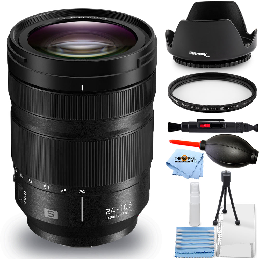 Panasonic Lumix S 24–105 mm f/4 Makro-OIS-Objektiv S-R24105 – 7-teiliges Zubehörpaket