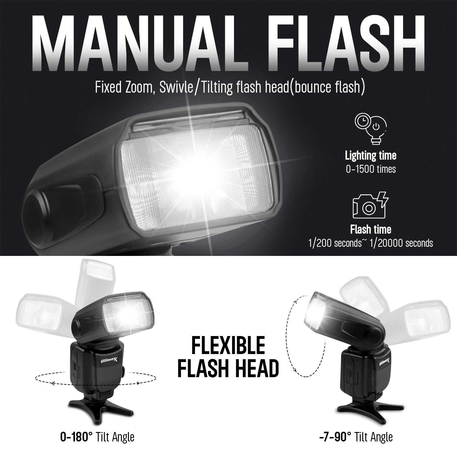 Universeller automatischer Blitz mit LCD-Display von Ultimaxx – 8-teiliges Zubehörpaket