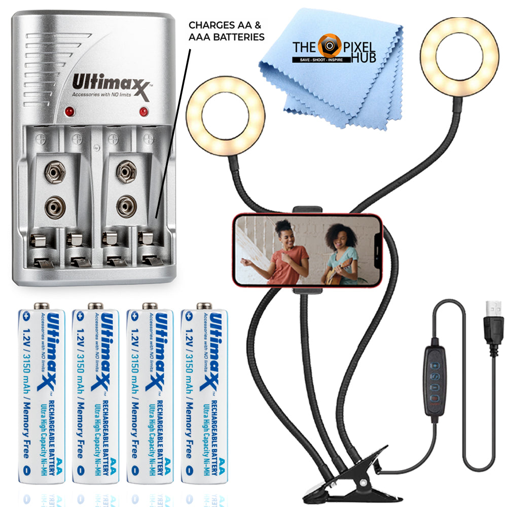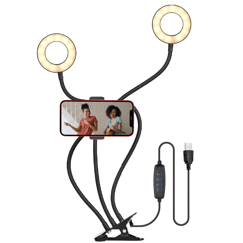 Bluestone USB Dual Ring Light with Phone Holder + AA Batteries Vlogging Kit