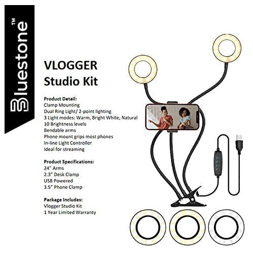 - Bluestone Dual Light Ring Streaming Vlogging Kit with Phone Stand