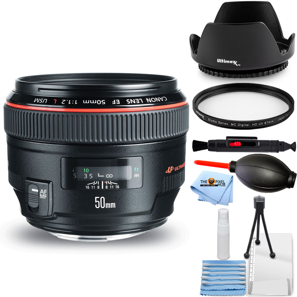 Canon EF 50mm f/1.2L USM Lens (Black) 1257B002 - 7PC Accessory Bundle