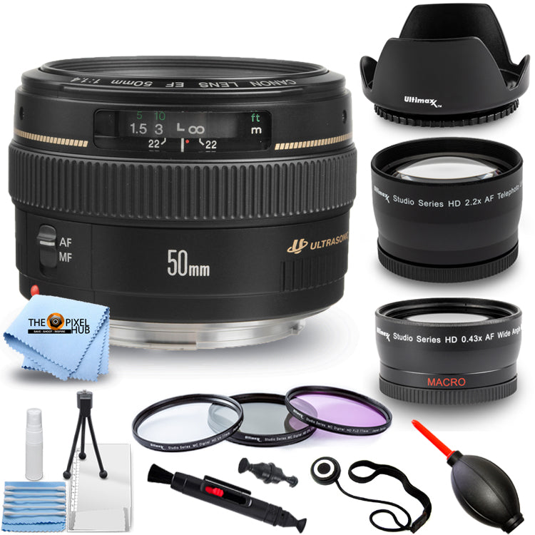 Canon EF 50mm f/1.4 USM Lens 2515A003 + Telephoto and Wide Angle Lenses Bundle