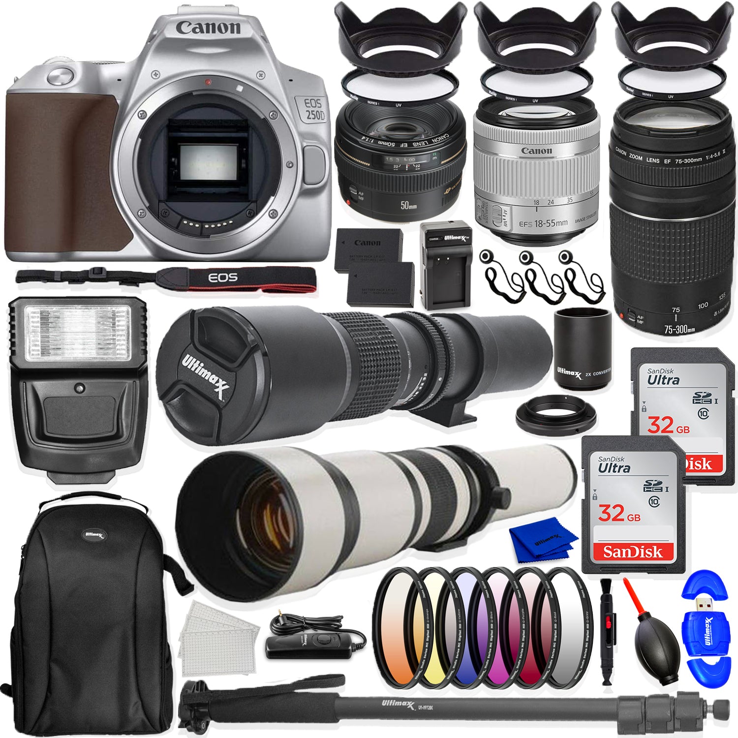 Canon EOS 250D/Rebel SL3 DSLR Camera (Silver, Body Only) - 30PC Accessory Bundle