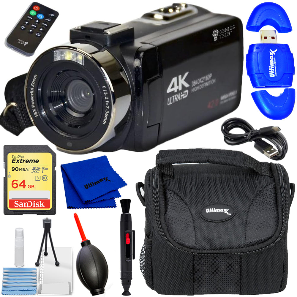 GeniusTech Digital 42MP Video Camera w/ 64GB SD Card, Remote, Case and USB Cable