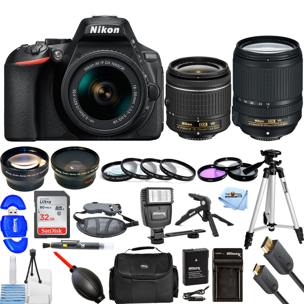 Nikon D5600 DSLR with AF-P 18-55mm + 18-140mm VR - Top Value 4 Lenses Bundle