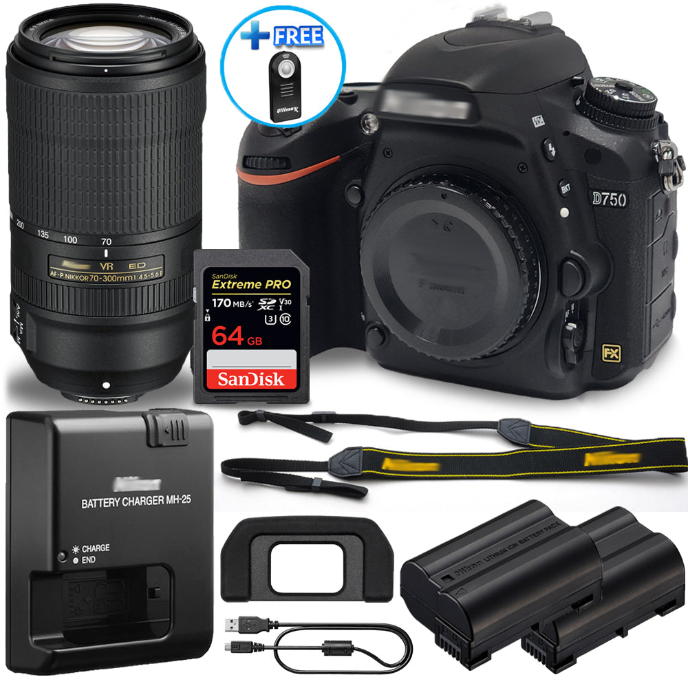 Nikon D750 DSLR with 18-55mm + 70-300mm ED VR Lens + 64GB + EXT BATT Bundle