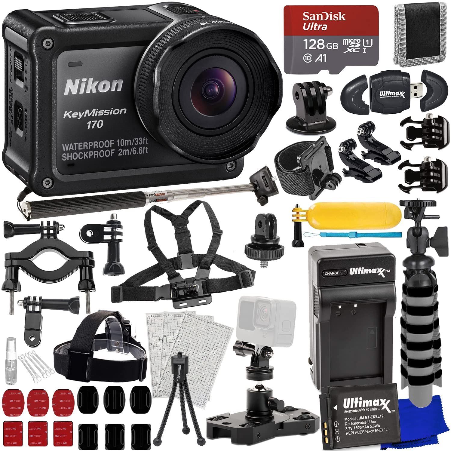 Nikon KeyMission 170 4K Action Camera 26514 - 25PC Accessory Bundle