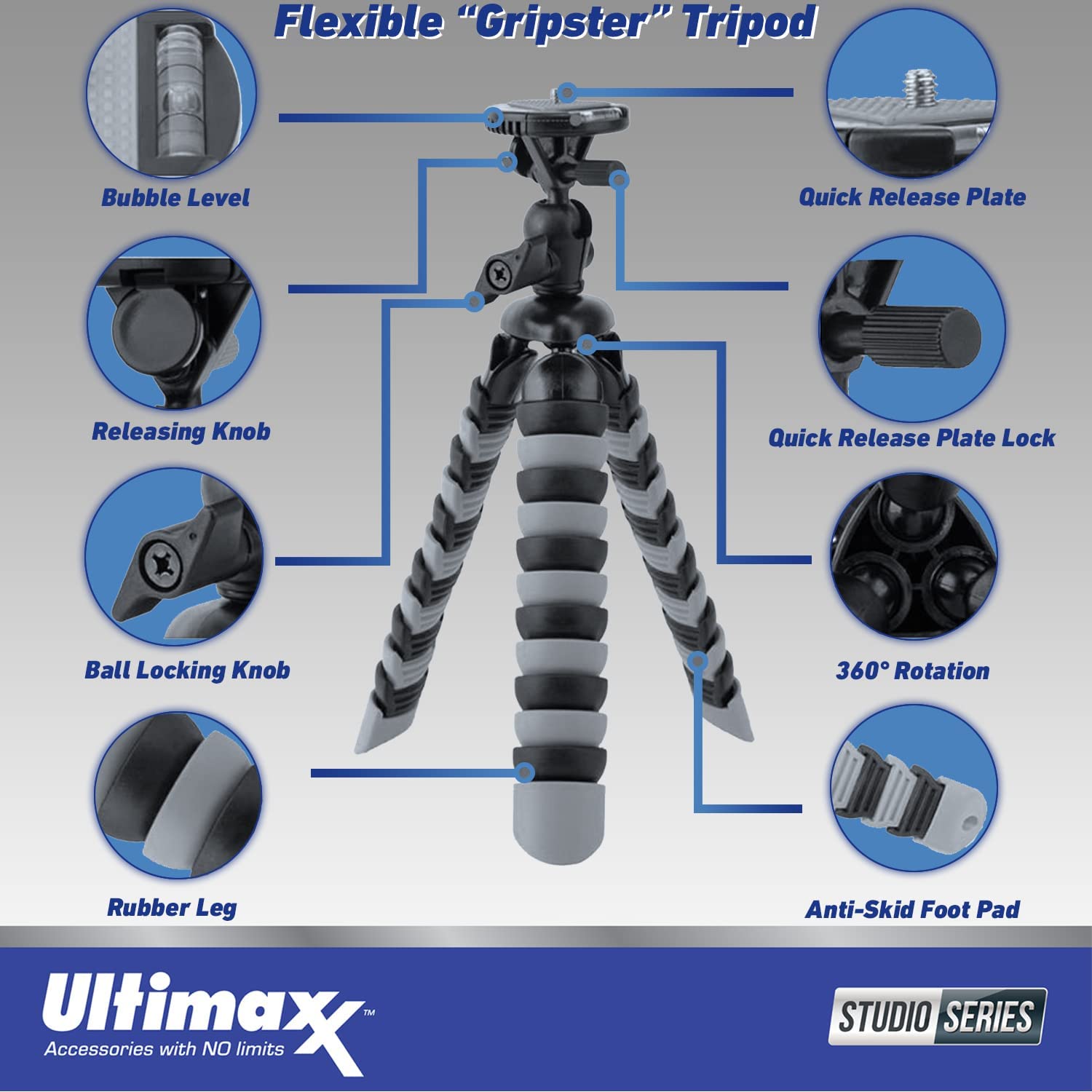 - ULTIMAXX 8 TRIPOD GRIPSTER (GREY)