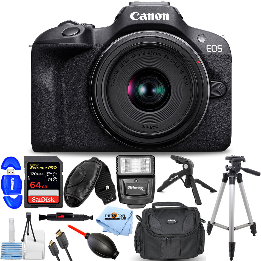 - Canon EOS R100 Mirrorless Camera with 18-45mm Lens